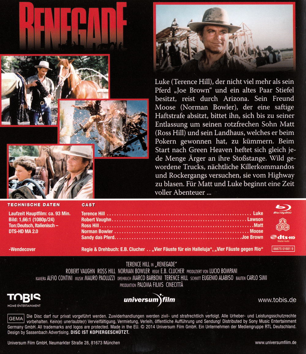 Wo Luke Renegade auftaucht, kocht der Asphalt, schiebt der Sheriff Überstunden, ist im Strassengraben die Hölle los. Er, ein schlitzohriger Asphalt-Cowboy mit ordentlichem Dampf in den Fäusten, sein Kumpel Matt ein rotzfrecher Flegel, der verflucht gut mit dem Messer umgehen kann. Und dann ist da noch das Pferd Joe Brown, Renegade's vierbeinige Reisekasse.
