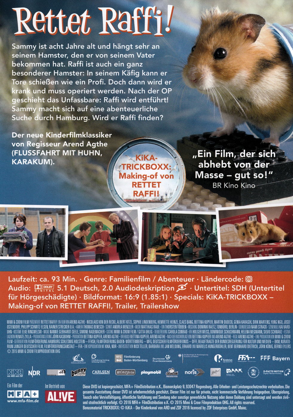 Sammy ist acht Jahre alt und hängt sehr an seinem Hamster, den er von seinem Vater bekommen hat. Raffi ist auch ein ganz besonderer Hamster: In seinem Käfig kann er Tore schiessen, wie ein Profi. Doch dann wird er krank und muss operiert werden. Nach der OP geschieht das Unfassbare: Raffi wird entführt! Sammy macht sich auf eine abenteuerliche Suche durch Hamburg. Wird er Raffi finden? Ein Hamsterkrimi für kleine und grosse Zuschauer.