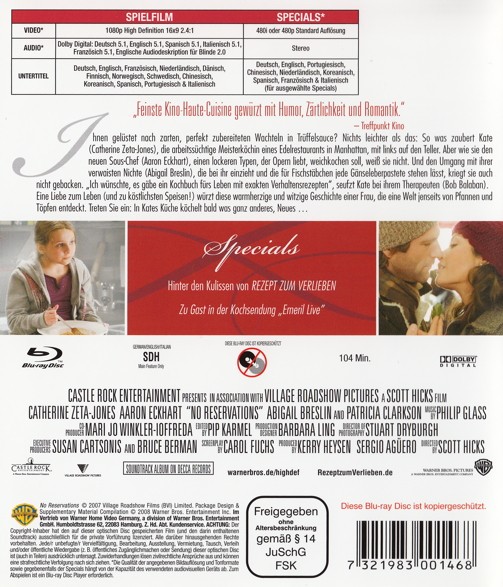 Ihnen gelüstet nach zarten, perfekt zubereiteten Wachteln in Trüffelsauce? Nichts leichter als das: So was zaubert Kate (Catherine Zeta-Jones), die arbeitssüchtige Meisterköchin eines Edelrestaurants in Manhattan, mit links auf den Teller. Aber wie sie den neuen Sous-Chef (Aaron Eckhart), einen lockeren Typen, der Opern liebt, weichkochen soll, weiss sie nicht. Und den Umgang mit ihrer verwaisten Nichte (Abigail Breslin), die bei ihr einzieht und die für Fischstäbchen jede Gänseleberpastete stehen lässt, kriegt sie auch nicht gebacken. "Ich wünschte, es gäbe ein Kochbuch fürs Leben mit exakten Verhaltensrezepten", seufzt Kate bei ihrem Therapeuten (Bob Balaban).