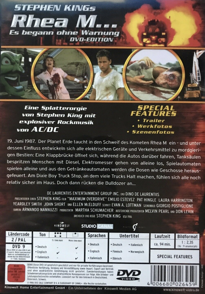 Im Jahr 1987 taucht der Planet Erde in den Schweif des Kometen Rhea M ein - und unter dessen Einfluss entwickeln sich alle elektrischen Geräte und Verkehrsmittel zu mordgierigen Bestien: Eine Klappbrücke öffnet sich, während Autos darüber fahren. Tanksäulen bespritzen Menschen mit Diesel, Elektromesser gehen von alleine los, Spielautomaten spielen alleine und aus den Getränkeautomaten werden Dosen wie Geschosse herausgefeuert. Am Dixie Boy Truck Stop, an dem viele Trucks Halt machen, fühlen sich alle noch relativ sicher im Haus. Doch dann rücken die Bulldozer an...
