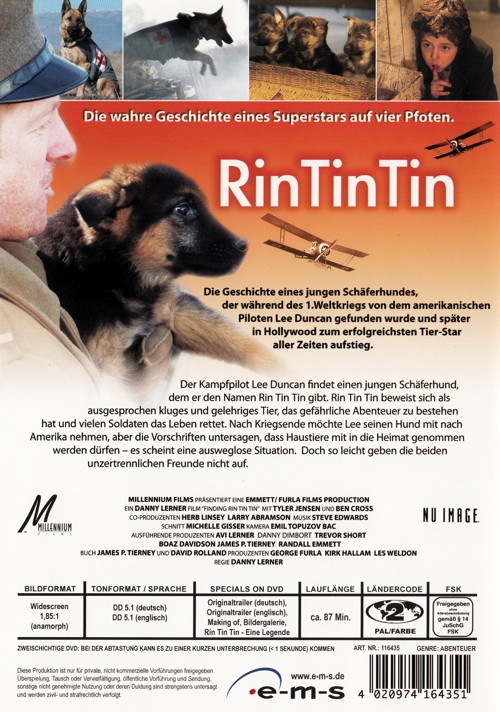 Der amerikanische Pilot Lee Duncan findet bei der Suche nach Überlebenden in einer französischen Kleinstadt eine deutsche Schäferhündin mit drei Welpen. Als Lee zum 135. Luftgeschwader versetzt wird, nimmt er die Hunde mit. Einem der Welpen gibt er den Namen Rin Tin Tin. Rin Tin Tin wird sein treuer und folgsamer Begleiter, der sowohl seinem Herrchen, als auch Verwundeten im Feld das Leben rettet. Als der Krieg vorbei ist, möchte er Rin Tin Tin mit nach Amerika nehmen, aber die Vorschriften untersagen, dass Haustiere an Bord der Schiffe mit in die Heimat genommen werden dürfen - es scheint eine ausweglose Situation. Doch so leicht geben die beiden unzertrennlichen Freunde nicht auf.