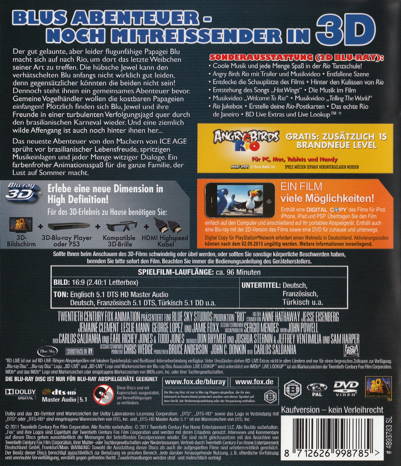 Der gut gelaunte, aber leider flugunfähige Papagei Blu macht sich auf nach Rio, um dort das letzte Weibchen seiner Art zu treffen. Die hübsche Jewel kann den verhätschelten Blu anfangs nicht wirklich gut leiden, denn gegensätzlicher könnten die beiden nicht sein! Dennoch steht ihnen ein gemeinsames Abenteuer bevor. Gemeine Vogelhändler wollen die kostbaren Papageien einfangen! Plötzlich finden sich Blu, Jewel und ihre Freunde in einer turbulenten Verfolgungsjagd quer durch den brasilianischen Karneval wieder. Und eine ziemlich wilde Affengang ist auch noch hinter ihnen her...