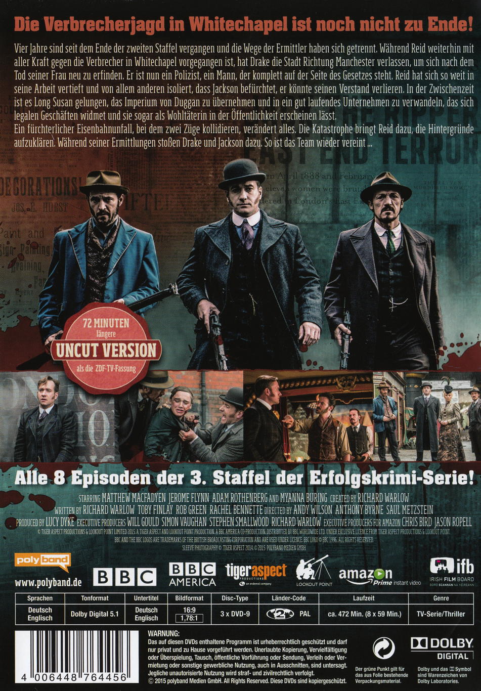Vier Jahre sind seit dem Ende der zweiten Staffel vergangen und die Wege der Ermittler haben sich getrennt. Während Reid weiterhin mit aller Kraft gegen die Verbrecher in Whitechapel vorgegangen ist, hat Drake die Stadt Richtung Manchester verlassen, um sich nach dem Tod seiner Frau neu zu erfinden. Er ist nun ein Polizist, ein Mann, der komplett auf der Seite des Gesetzes steht. Reid hat sich so weit in seine Arbeit vertieft und von allem anderen isoliert, dass Jackson befürchtet, er könnte seinen Verstand verlieren. In der Zwischenzeit ist es Long Susan gelungen, das Imperium von Duggan zu übernehmen und in ein gut laufendes Unternehmen zu verwandeln, das sich legalen Geschäften widmet und sie sogar als Wohltäterin in der Öffentlichkeit erscheinen lässt. Ein fürchterlicher Eisenbahnunfall, bei dem zwei Züge kollidieren, verändert alles. Die Katastrophe bringt Reid dazu, die Hintergründe aufzuklären. Während seiner Ermittlungen stossen Drake und Jackson dazu. Das Team ist wieder vereint, doch für Reid wird sein Einsatz auch zu einer schmerzlichen Auseinandersetzung mit seiner Vergangenheit und mit den bisher unaufgeklärten Verbrechen von Long Susan und Ronald Capshaw.