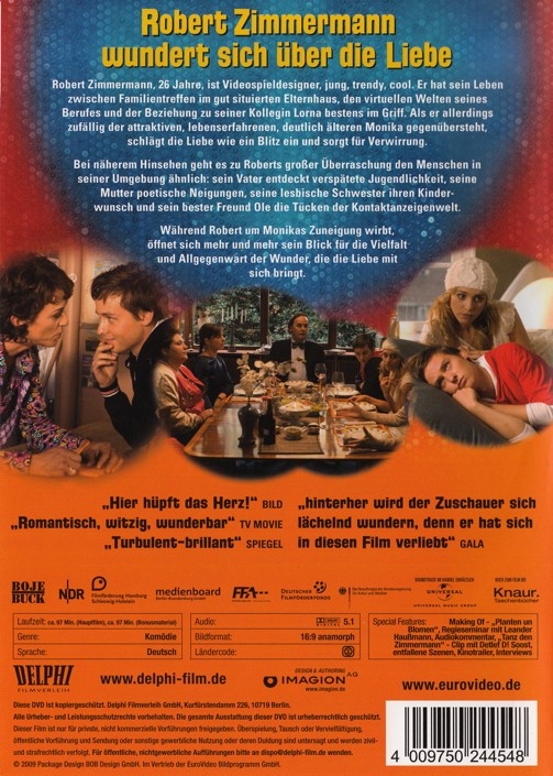 Bei näherem Hinsehen geht es zu Roberts grosser Überraschung den Menschen in seiner Umgebung ähnlich: sein Vater entdeckt verspätete Jugendlichkeit, seine Mutter poetische Neigungen, seine lesbische Schwester ihren Kinderwunsch und sein bester Freund Ole die Tücken der Kontaktanzeigenwelt.