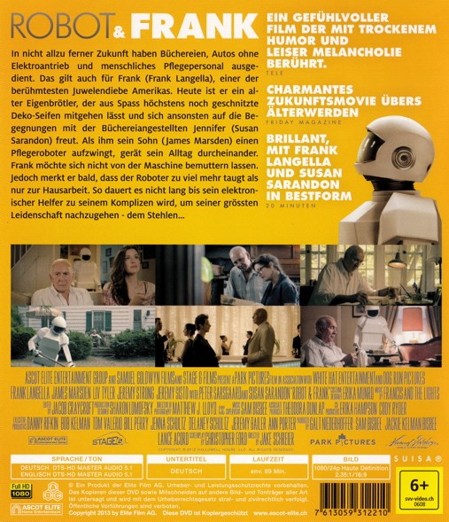 In nicht allzu ferner Zukunft haben echte Büchereien, Autos ohne Elektroantrieb und menschliches Pflegepersonal nur noch nostalgischen Wert. Das gleiche gilt auch für Franks gute alte Zeiten als einer der berühmtesten Juwelendiebe Amerikas. Heute ist er ein alter, vergesslicher Eigenbrötler, der aus Spass höchstens noch geschnitzte Deko-Seifen mitgehen lässt und sich ansonsten auf die Begegnungen mit der Büchereiangestellten Jennifer freut. Als ihm sein Sohn Hunter einen Pflege-Roboter aufzwingt, gerät sein Alltag gewaltig durcheinander. Frank ist genervt und möchte sich bestimmt nicht von einer Maschine bemuttern lassen. Jedoch merkt er bald, dass Robot zu viel mehr taugt als nur für die Hausarbeit und gesunde Mahlzeiten. So dauert es nicht lang bis sein elektronischer Helfer zu seinem Komplizen wird, um seiner grössten Leidenschaft nachzugehen - dem Stehlen...