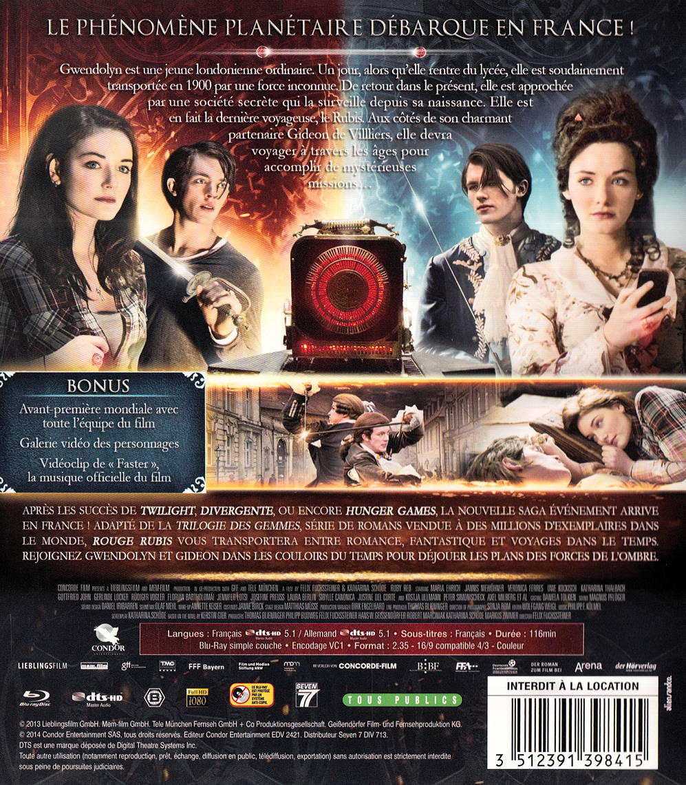 Gwendolyn est une jeune londonielle ordinaire. Un jour, alors qu'elle rentre du lycée, elle est soudainement transportée en 1900 par une force inconnue. De retour dans le présent, elle est approchée par une force secrète qui la surveille depuis sa naissance. Elle est en fait la dernière voyageuse, le Rubis. Aux côtés de son charmant partenaire Gideon de Villiers, elle devra voyager à travers les âges pour accomplir de mystérieuses missions...