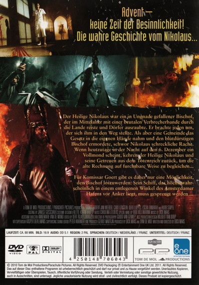 Der Heilige Nikolaus war ein in Ungnade gefallener Bischof, der im Mittelalter mit einer brutalen Verbrecherbande durch die Lande reiste und Dörfer ausraubte. Er brachte jeden um, der sich ihm in den Weg stellte. Als aber eine Gemeinde das Gesetz in die eigenen Hände nahm und den blutdürstigen Bischof ermordete, schwor Nikolaus schreckliche Rache. Wenn heutzutage in der Nacht auf den 6. Dezember ein Vollmond scheint, kehren der Heilige Nikolaus und seine Getreuen aus dem Totenreich zurück, um die alte rechnung auf furchtbare Weise zu begleichen...