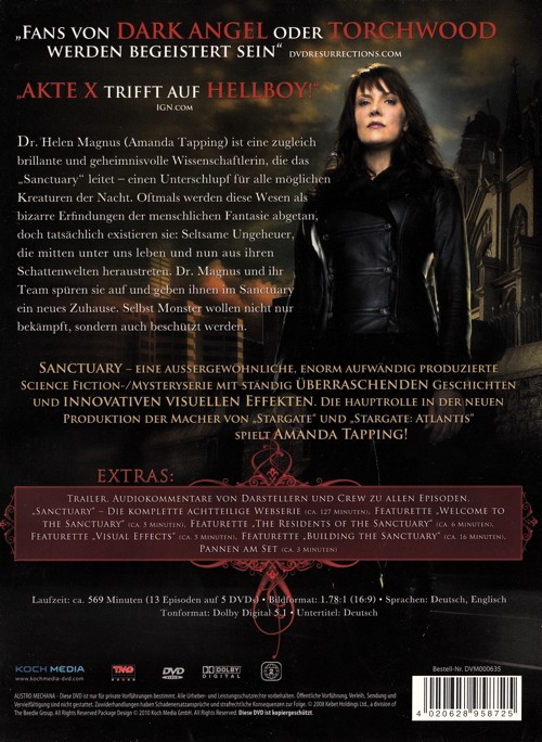 Dr. Helen Magnus (Amanda Tapping) ist eine zugleich brillante und geheimnisvolle Wissenschaftlerin, die das "Sanctuary" leitet - einen Unterschlupf für alle möglichen Kreaturen der Nacht. Oftmals werden diese Wesen als bizzare Erfindungen der menschlichen Faantasie abgetan, doch tatsächlich existieren sie: Seltsame Ungeheuer, die mitten unter uns leben und nun aus ihren Schattenwelten heraustreten. Dr. Magnus und ihr Team spüren sie auf und geben ihnen im Sanctuary ein neues Zuhause. Selbst Monster wollen nicht nur bekämpft, sondern auch beschützt werden.