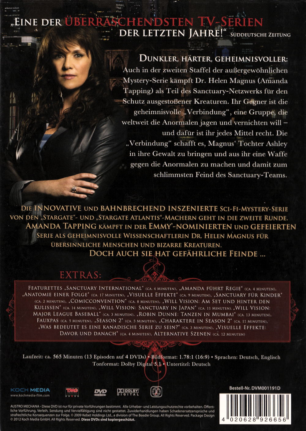 Auch in der zweiten Staffel der aussergewöhnlichen Mystery-Serie kämpft Dr. Helen Magnus als Teil des Sanctuary-Netzwerks für den Schutz ausgestossener Kreaturen. Ihr Gegenr ist die geheimnissvolle "Verbindung", eine Gruppe, die weltweit die Anormalen jagen und vernichten will - und dafür ist ihr jedes Mittel recht. Die Verbindung schafft es, Magnus' Tochter Ashley in ihre Gewalt zu bringen und aus ihr eine Waffe gegen die Anormalen zu machen und damit zum schlimmsten Feind des Sanctuary-Teams.