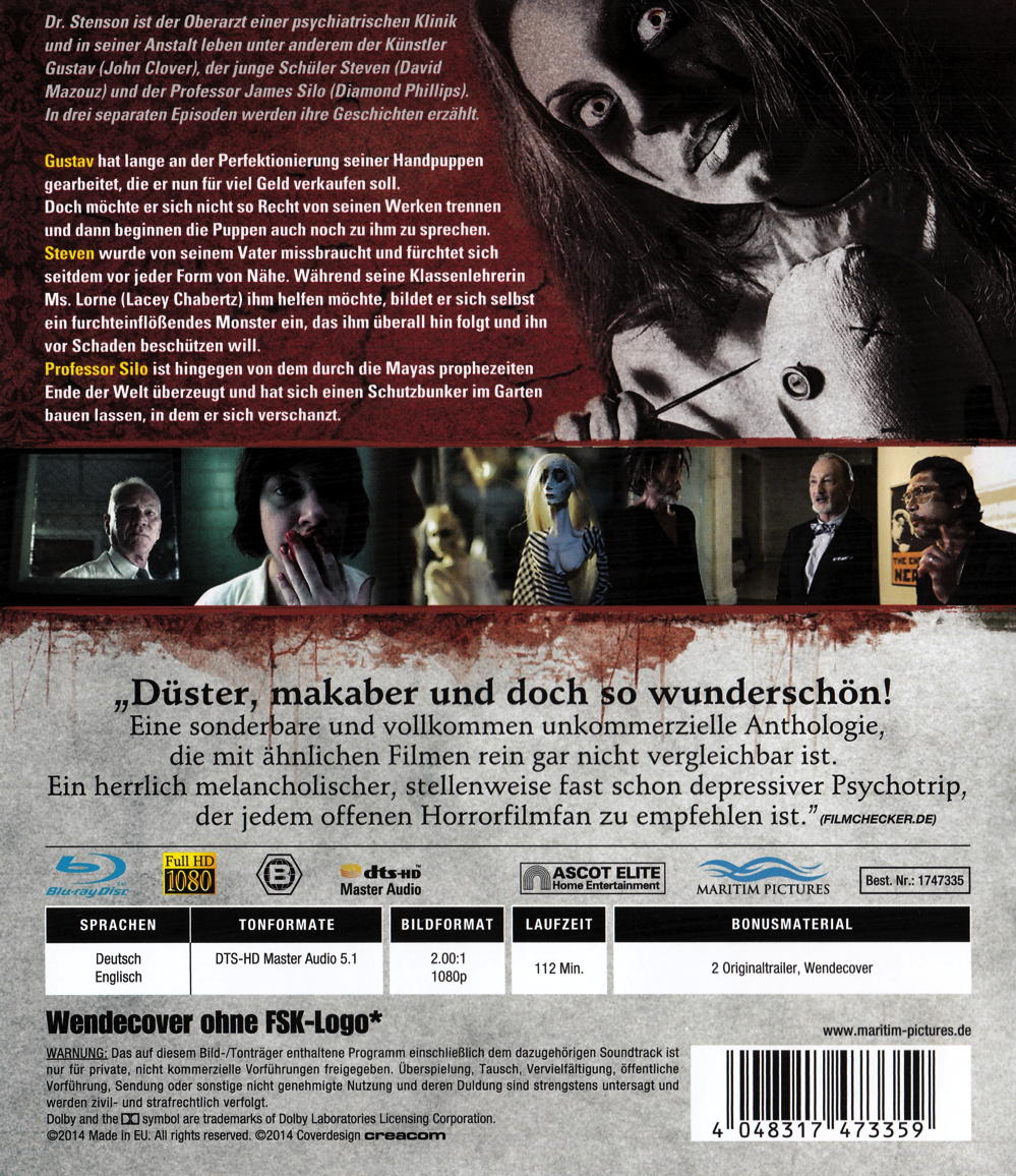 Dr. Stenson ist der Oberarzt einer psychiatrischen Klinik und in seiner Anstalt leben unter anderem der Künstler Gustav (John Clover), der junge Schüler Steven (David Mazouz) und der Professor James Silo (Diamond Phillips). In drei separaten Episoden werden ihre Geschichten erzählt. Gustav hat lange an der Perfektionierung seiner Handpuppen gearbeitet, die er nun für viel Geld verkaufen soll. Doch möchte er sich nicht so Recht von seinen Werken trennen und dann beginnen die Puppen auch noch zu ihm zu sprechen. Steven wurde von seinem Vater missbraucht und fürchtet sich seitdem vor jeder Form von Nähe. Während seine Klassenlehrerin Ms. Lorne (Lacey Chabertz) ihm helfen möchte, bildet er sich selbst ein furchteinflößendes Monster ein, das ihm überall hin folgt und ihn vor Schaden beschützen will. Professor Silo ist hingegen von dem durch die Mayas prophezeiten Ende der Welt überzeugt und hat sich einen Schutzbunker im Garten bauen lassen, in dem er sich verschanzt.