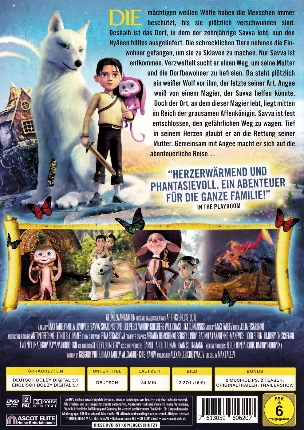 Die mächtigen weissen Wölfe haben die Menschen immer beschützt, bis sie plötzlich verschwunden sind. Deshalb ist das Dorf, in dem der zehnjährige Savva lebt, nun den Hyänen hilflos ausgeliefert. Die schrecklichen Tiere nehmen die Einwohner gefangen, um sie zu Sklaven zu machen. Nur Savva ist entkommen. Verzweifelt sucht er einen Weg, um seine Mutter und die Dorfbewohner zu befreien. Da steht plötzlich ein weisser Wolf vor ihm, der letzte seiner Art. Angee weiss von einem Magier, der Savva helfen könnte. Doch der Ort, an dem dieser Magier lebt, liegt mitten im Reich der grausamen Affenkönigin. Savva ist fest entschlossen, den gefährlichen Weg zu wagen. Tief in seinem Herzen glaubt er an die Rettung seiner Mutter. Gemeinsam mit Angee macht er sich auf die abenteuerliche Reise...