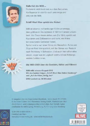 Mit den Folgen: Schiff Ahoi! Hier Hafen Hamburg! Willi ist im Hamburger Hafen unterwegs, dem grössten in Deutschland. Er fährt im Schlepperboot mit einem Lotsen, das die Ozeanriesen sicher in den Hafen bringt. Der Lotse hilft den Kapitänen, die sich mit der Fahrrinne nicht auskennen, zeigt Untiefen und gefährliche Stromschnellen (Willi wills wissen-Folge 43) und Auf die Fähre, fertig, los! Dass Fähren Menschen und ihre Autos von einem Ort zum anderen transportieren, ist nichts Besonderes. Dass aber ganze Züge mit an Bord genommen werden können, das hat Willi noch nicht gewusst. Willi ist heute auf der Mecklenburg-Vorpommern unterwegs, einem Fährschiff, das auf der Ostsee von Rostock nach Trelleborg in Schweden fährt (Willi wills wissen-Folge 50)ch nicht gewusst. Willi ist heute auf der Mecklenburg-Vorpommern unterwegs, einem Fährschiff, das auf der Ostsee von Rostock nach Trelleborg in Schweden fährt. Die Züge werden mit einer Rangierlok in das Innere des Schiffsbauchs geschoben. Über 900m Gleise sind in der Fähre verlegt! Aber Vorsicht beim Beladen - immer ein Zug rechts und ein Zug links, sonst kentert das Schiff. Im Zug oder in den Autos darf nicht übernachtet werden, dafür gibt es Kabinen an Bord. Wer sich keine Kabine nehmen will, der kann sich auch ins Restaurant legen und schlafen - auf einer Fähre geht das! Die Passagiere können sich ausruhen - Kapitän Schütz sorgt für eine sichere Überfahrt. Für alle Fälle, wird aber jeder Kurswechsel im Logbuch notiert. Und alles, was gesprochen wird, nimmt die Blackbox auf. Sollte nämlich ein Unglück passieren, kann mit diesen Daten der Hergang genau rekonstruiert werden. Und schon gibt es Alarm! Willi weiss gar nicht, wie ihm geschieht - Rettungsweste anziehen und schnell zu den Rettungsbooten! Aber keine Sorge, alles geht gut. Willi kommt sicher in Schweden an und kauft sich gleich ein Souvenir: Pippi Langstrumpf auf Schwedisch... (Willi wills wissen-Folge 50)