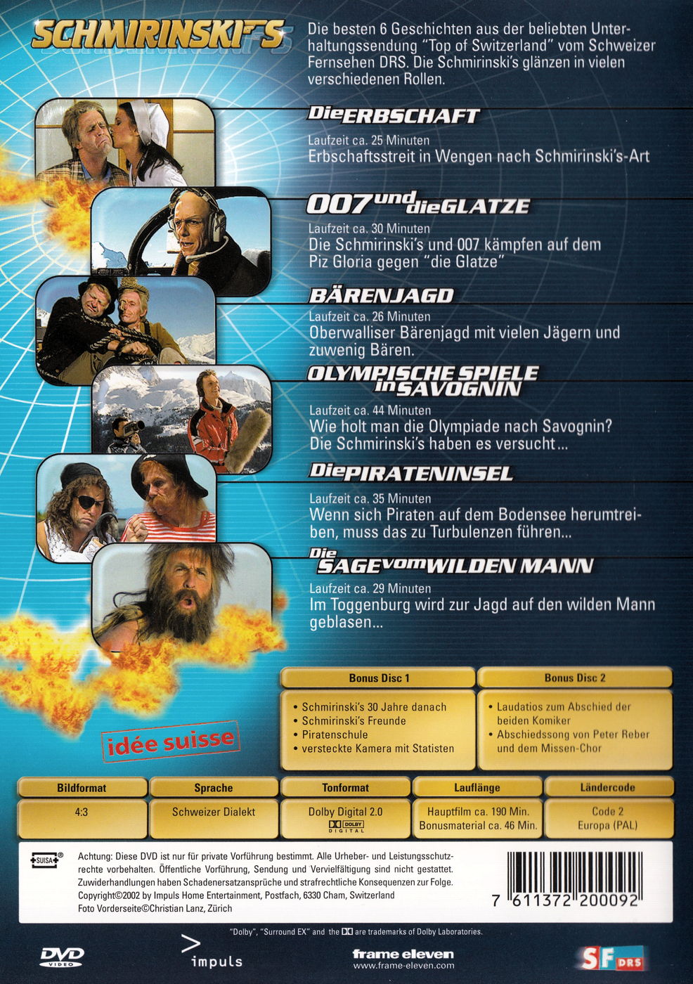 Die besten 6 Geschichten aus der beliebten Unterhaltungssendung "Top of Switzerland" vom Schweizer Fernsehen DRS. Die Schmirinski's glänzen in vielen verschiedenen Rollen.