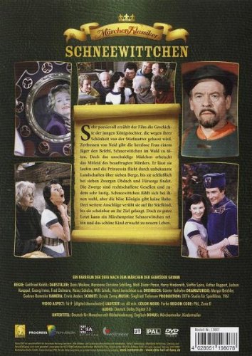 Sehr poesievoll erzählt der Film die Geschichte der jungen Königstochter, die wegen ihrer Schönheit von der Stiefmutter gehasst wird. Zerfressen von Neid gibt die herzlose Frau einem Jäger den Befehl, Schneewittchen im Wald zu töten. Doch das unschuldige Mädchen erheischt das Mitleid des beauftragten Mörders. Er lässt sie laufen, und die Prinzessin flieht durch unbekannte Landschaften über sieben Berge, bis sie schliesslich bei sieben Zwergen Obdach und Fürsorge findet. Die Zwerge sind rechtschaffene Gesellen und zudem sehr lustig. Schneewittchen fühlt sich bei ihnen wohl, aber die böse Königin gibt keine Ruhe. Drei weitere Anschläge verübt sie auf ihr Stiefkind, bis sie scheinbar an ihr Ziel gelangt. Doch zu guter Letzt kann ein Märchenprinz Schneewittchen retten, und das schöne Kind erwacht zu neuem Leben.