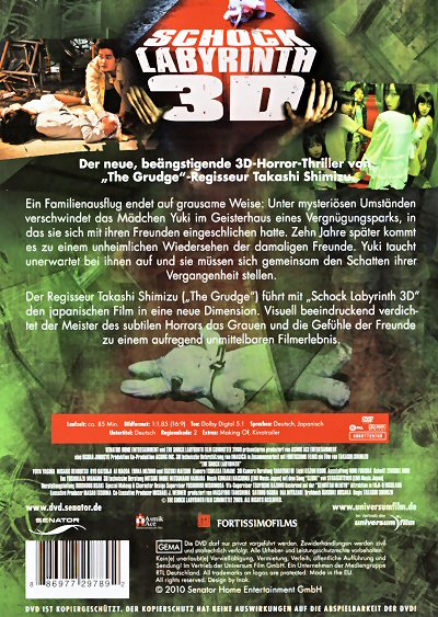 Der Regisseur Takashi Shimizu ("The Grudge"), führt mit "Schock Labyrinth 3D" den japanischen Film in eine neue Dimension. Visuell beeindruckend verdichtet der Meister des subtilen Horrors das Grauen und die Gefühle der Freunde zu einem aufregend unmittelbaren Filmerlebnis.