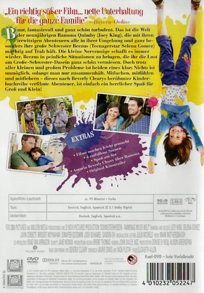 Bunt, fantasievoll und ganz schön turbulent. Das ist die Welt der neunjährigen Ramona Quimby (Joey King), die mit ihren irrwitzigen Abenteuern alle in ihrer Umgebung und ganz besonders ihre grosse Schwester Beezus (Teenagerstar Selena Gomez) mächtig auf Trab hält. Die kleine Nervensäge schafft es immer wieder, Beezus in peinliche Situationen zu bringen, die ihr die Lust am Grosse-Schwester-Dasein ganz schön vermiesen. Doch trotz aller kleinen und grossen Probleme ist beiden eines klar: Nichts ist unmöglich, solange man nur zusammenhält. Mitlachen, mitfühlen und mitfiebern - dieses nach Beverly Clearys berühmter Kinderbuchreihe verfilmte Abenteuer, ist einfach ein herrlicher Spass für Gross und Klein!