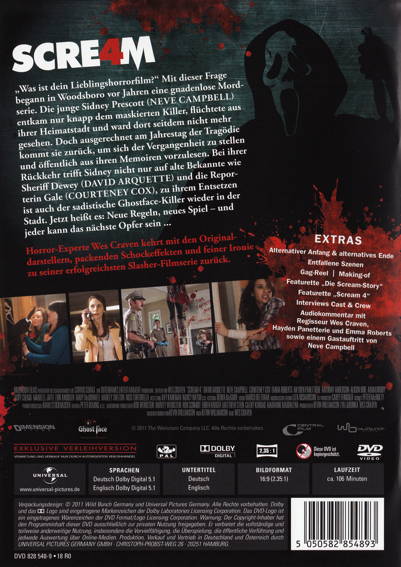 "Was ist dein Lieblingshorrorfilm?" Mit dieser Frage begann in Woodsboro vor Jahren eine gnadenlose Mordserie. Die junge Sidney Prescott (Neve Campbell) entkam nur knapp dem maskierten Killer, flüchtete aus ihrer Heimatstadt und ward dort seitdem nicht mehr gesehen. Doch ausgerechnet am Jahrestag der Tragödie kommt sie zurück, um sich der Vergangenheit zu stellen und öffentlich aus ihren Memoiren vorzulesen. Bei ihrer Rückkehr trifft Sidney nicht nur auf alte Bekannte wie Sheriff Dewey (David Arquette) und die Reporterin Gale (Courteney Cox), zu ihrem Entsetzen ist auch der sadistische Ghostface-Killer wieder in der Stadt. Jetzt heisst es: Neue Regeln, neues Spiel - und jeder kann das nächste Opfer sein ...
