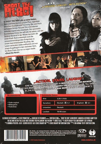 In "Shoot the Hero" gibt es keine Helden. Nate und Kate sind ein junges Paar, irgendwo zwischen Hochzeit und Trennung. Die vom Pech verfolgten Brüder Fat und Thin sind ebenso mitleiderregend wie urkomisch. Der paranoide Gansterboss Crazy Joe will alle tot sehen, und der Söldner-General in der Wüste hat mehr als einen Knall. Bald entwickeln sich die unzusammenhängenden Ereignisse zu einem haarsträubenden Roadtrip, der Leben verändert, Liebe entflammt und von einem Kugelhagel in den nächsten führt, bis Boss Crazy Joe nur zu sagen bleibt: "Shoot the Hero!"