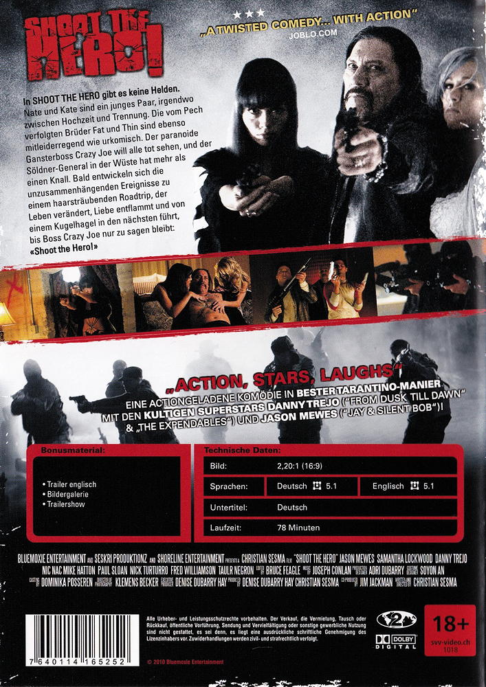 In "Shoot the Hero" gibt es keine Helden. Nate und Kate sind ein junges Paar, irgendwo zwischen Hochzeit und Trennung. Die vom Pech verfolgten Brüder Fat und Thin sind ebenso mitleiderregend wie urkomisch. Der paranoide Gangsterboss Crazy Joe will alle tot sehen, und der Söldner-General in der Wüste hat mehr als einen Knall. Bald entwickeln sich die unzusammenhängenden Ereignisse zu einem haarsträubenden Roadtrip, der Leben verändert, Liebe entflammt und von einem Kugelhagel in den nächsten führt, bis Boss Crazy Joe nur zu sagen bleibt: "Shoot the Hero!"