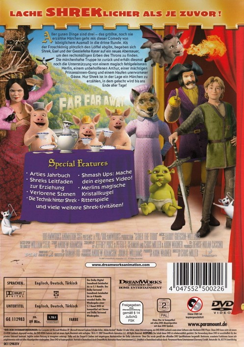 Als der Froschkönig plötzlich den Löffel abgibt, begeben sich Shrek, Esel und der Gestiefelte Kater auf ein neues Abenteuer um den rechtmässigen Erben des Throns zu finden. Die märchenhafte Truppe ist zurück und erhält diesmal noch die Unterstützung von einem magisch fehlgeleiteten Merlin, einem unbeholfenen Arthur, einer mächtigen Prinzessinnen-Gang und einem Haufen unerwarteter Gäste. Nur Shrek ist in der Lage ein Märchen zu erzählen in dem gelacht wird bis ans Ende aller Tage!