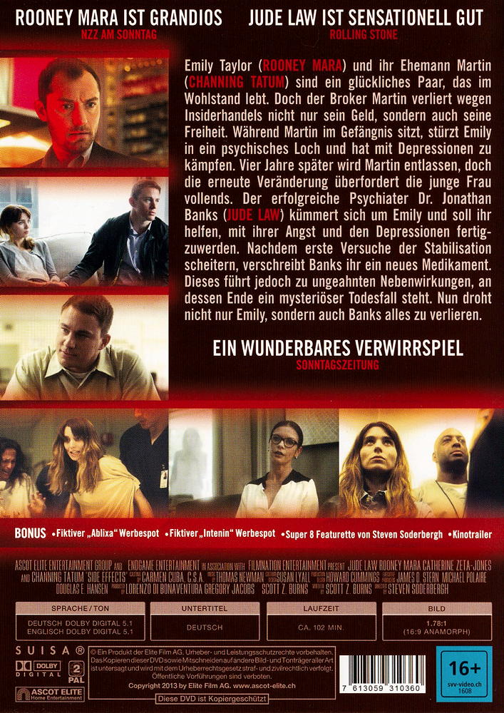 Der ehrgeizige Psychiater Dr. Jonathan Banks setzt alles daran, seiner neuen Patientin Emily Taylor, die nach einem Selbstmordversuch bei ihm eingeliefert wurde, zu helfen. Gerade erst ist Emilys Mann, der wegen Insiderhandels die letzten Jahre im Gefängnis sass, entlassen worden. Doch der Versuch, gemeinsam ein neues Leben zu beginnen, scheitert. Gleiches gilt für die Wirksamkeit der von Banks verschriebenen Medikamente. Banks nimmt Kontakt zu Emilys früherer Psychiaterin auf, die ihm rät, ein neues Medikament an Emily zu testen. Anfangs geht es ihr besser, doch schon bald erweisen sich die Nebenwirkungen als äusserst dramatisch. Nach einem mysteriösen Mordfall spürt Banks, wie er immer mehr die Kontrolle nicht nur über seine Patientin, sondern auch über sein eigenes Leben verliert. Er entscheidet sich, für die Suche nach der Wahrheit alles zu riskieren: seine Familie, seine Profession, seinen Ruf - als er einem unglaublichen Verdacht auf die Spur kommt...