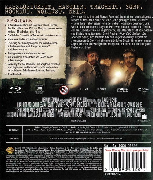 Bei der Jagd auf einen Ritualmörder werden zwei Detectives - Routinier Somerset (Morgan Freeman) und Hitzkopf Mill (Brad Pitt) - vor die härteste Zerreissprobe ihrer Laufbahn gestellt. Es scheint ihnen nicht nur der brutal-brilliante Killer, der seine Opfer nach dem Prinzip der sieben Todsünden hinrichtet, stets einen Schritt voraus zu sein, sondern der Fall droht auch ihre Existenz zu zerstören...