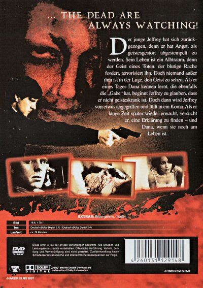 Der junge Jeffrey hat sich zurückgezogen, denn er hat Angst, als geistesgestört abgestempelt zu werden. Sein Leben ist ein Albtraum, der Geist eines Toten, der blutige Rache fordert, terrorisiert ihn, doch niemand ausser ihm ist in der Lage, den Geist zu sehen. Als er eines Tages Dana kennen lernt, die ebenfalls die "Gabe" hat, beginnt Jeffrey zu glauben, dass er nicht geisteskrank ist. Doch dann wird Jeffrey von etwas angegriffen und fällt in ein Koma. Als er lange Zeit später wieder erwacht, versucht er, eine Erklärung zu finden - und Dana, wenn sie noch am Leben ist.