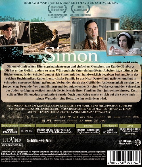 Simon lebt mit seinen Eltern, prinzipientreuen und einfachen Menschen, am Rande Göteborgs. Oft hat er das Gefühl, anders zu sein: Während der Vater ein kräftiger Arbeiter ist, ist der Sohn ein Bücherwurm. In der Schule freundet sich Simon mit dem handwerklich begabten Isak an, Sohn des reichen Buchhändlers Ruben Lentov. Isaks Familie ist aus Nazi-Deutschland geflohen und hat in Schweden eine neue Heimat gefunden. Verbunden durch ihre empfundene Andersartigkeit werden die Jungen enge Freunde. Vor dem Hintergrund des aufziehenden Zweiten Weltkrieges und der Schrecken der Judenverfolgung verflechten sich die Schicksale ihrer Familien über Jahrzehnte hinweg. Erst spät erfährt Simon, dass er adoptiert wurde. Nach dem Krieg macht er sich auf die Suche nach seiner Herkunft - eine Reise, die ihn verändern wird.