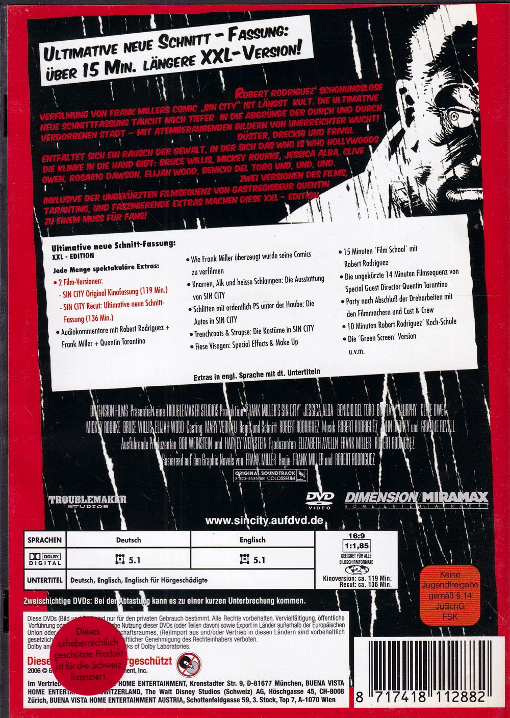 Willkommen in Sin City! Diese Stadt begrüsst die Harten, die Korrupten, die mit den gebrochenen Herzen. Einer von ihnen ist Marv ein riesiger Schlägertyp, der für eine einzige Nacht das Glück in den Armen einer Frau findet. Am Morgen liegt sie ermordet neben ihm und Marv sinnt auf Rache um jeden Preis. DwightsProblem ist Jackie Boy der psychopathische Ex-Lover seiner Geliebten, den er aufhalten muss. Für John Hartigan bleibt nur noch eine Stunde, bis der letzte aufrichtige Cop von Sin City seine Marke abgibt. Doch davor gilt es noch, ein kleines Mädchen aus den Fängen eines Perversen zu retten und ihm die Waffen abzunehmen alle Waffen.