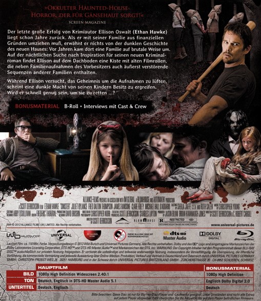 Der letzte Erfolg, den der True-Crime-Autor Ellison Oswalt je erzielte, liegt zehn Jahre zurück und der Familienvater braucht dringend Geld. Damals hatte er es sich mit der Polizei verscherzt, weshalb ihm beim Einzug in sein neues Haus behördliche Feindseligkeit entgegenschlägt. Seine Frau Tracy und die beiden Kinder ahnen nicht, dass die Voreigentümer im Garten ermordet wurden und Ellison auf dem Dachboden das dazugehörige Snuff-Video sichtet. Fortan häufen sich unheimliche Vorfälle einer dunklen Macht, die es auf die Oswalts abgesehen hat.