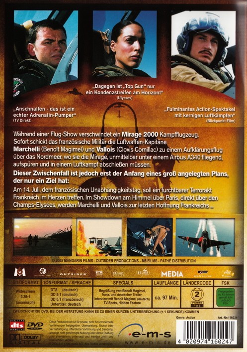 Während einer Flug-Show verschwindet ein Mirage 2000 Kampfflugzeug. Sofort schickt das französische Militär die Luftwaffenkapitäne Marchelli (Benoît Magimel)und Vallois (Clovis Cornillac)zu einem Aufklärungsflug über das Nordmeer, wo sie die Mirage, unmittelbar unter einem Airbus A340 fliegend, aufspüren und in einem Luftkampf abschiessen müssen.