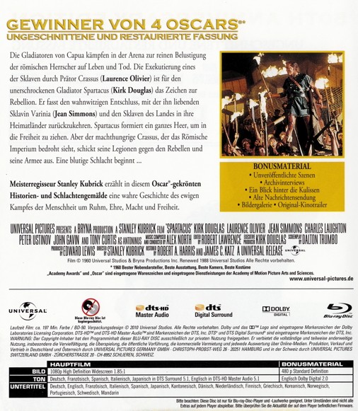 Kirk Douglas, Laurence Olivier, Richard Farnsworth, Arthur Batanides, Jean Simmons, Harold Goodwin, Robert Fuller, Dick Crockett, John Gavin, Nina Foch...Joanna Barnes, Peter Brocco, Peter Ustinov, Bob Burns, Joe Canutt, Paul E. Burns, Harold J. Stone, Tony Curtis, Chuck Courtney, Buff Brady, Woody Strode, Herbert Lom, Robert J. Wilke, Brad Harris, Charles Laughton, Charles McGraw, John Hoyt, John Ireland, Roy Engel, Sol Gorss, Paul Lambert, Nick Dennis, Frederick Worlock, James Griffith, Ted De Corsia, John Dall, Seamon Glass, Johnny Duncan, Carol Daniels, Bill Blackburn, Terence de Marney, Rudy Bukich, Tap Canutt, Al Carmichael, Joe Gold, Charlotte Fletcher