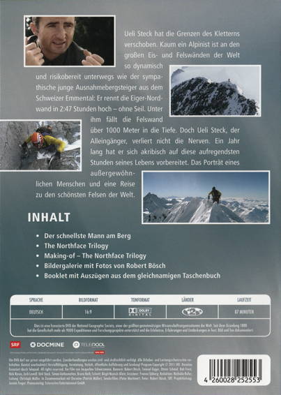 Ueli Steck hat die Grenzen des Kletterns verschoben. Kaum ein Alpinist ist an den grossen Eis- und Felswänden der Welt so dynamisch und risikobereit unterwegs wie der sympathische junge Ausnahmebergsteiger aus dem Schweizer Emmental: Er rennt die Eiger-Nordwand in 2:47 Stunden hoch - ohne Seil. Unter ihm fällt die Felswand über 1000 Meter in die Tiefe. Doch Ueli Steck, der Alleingänger, verliert nicht die Nerven. Ein Jahr lang hat sich Steck akribisch auf diese knapp drei Stunden in seinem Leben vorbereitet. Das Porträt eines aussergewöhnlichen Menschen, und eine Reise zu den schönsten Felsen der Welt.