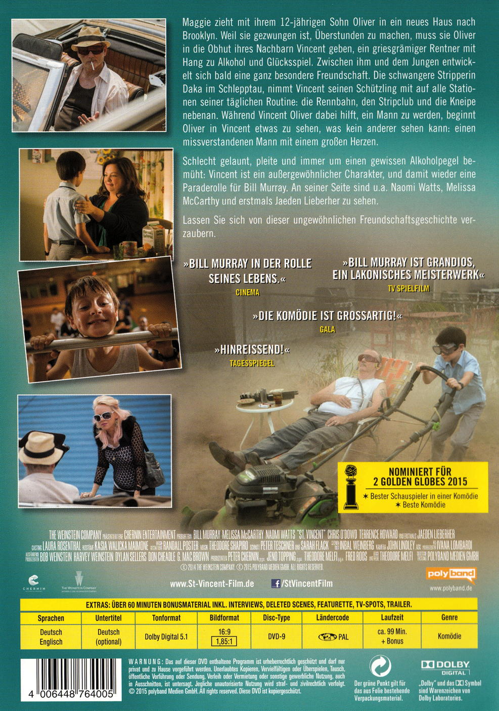 Maggie, eine alleinerziehende Mutter, zieht mit ihrem 12-jährigen Sohn Oliver in ein neues Haus nach Brooklyn. Weil sie gezwungen ist, Überstunden zu machen, muss sie Oliver in die Obhut ihres Nachbarn Vincent geben, ein griesgrämiger Rentner mit Hang zu Alkohol und Glücksspiel. Zwischen ihm und dem Jungen entwickelt sich bald eine ganz besondere Freundschaft. Die schwangere Stripperin Daka im Schlepptau, nimmt Vincent seinen Schützling mit auf alle Stationen seiner täglichen Routine: die Rennbahn, den Stripclub und die Kneipe nebenan. Während Vincent Oliver dabei hilft, ein Mann zu werden, beginnt Oliver in Vincent etwas zu sehen, was kein anderer sehen kann: einen missverstandenen Mann mit einem grossen Herzen.