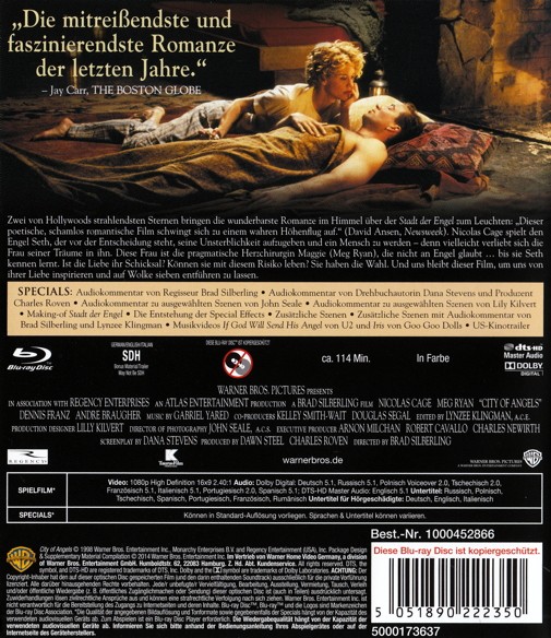 - Schauspieler Nicolas Cage, Colm Feore, Meg Ryan, Andre Braugher, Robin Bartlett, Dennis Franz