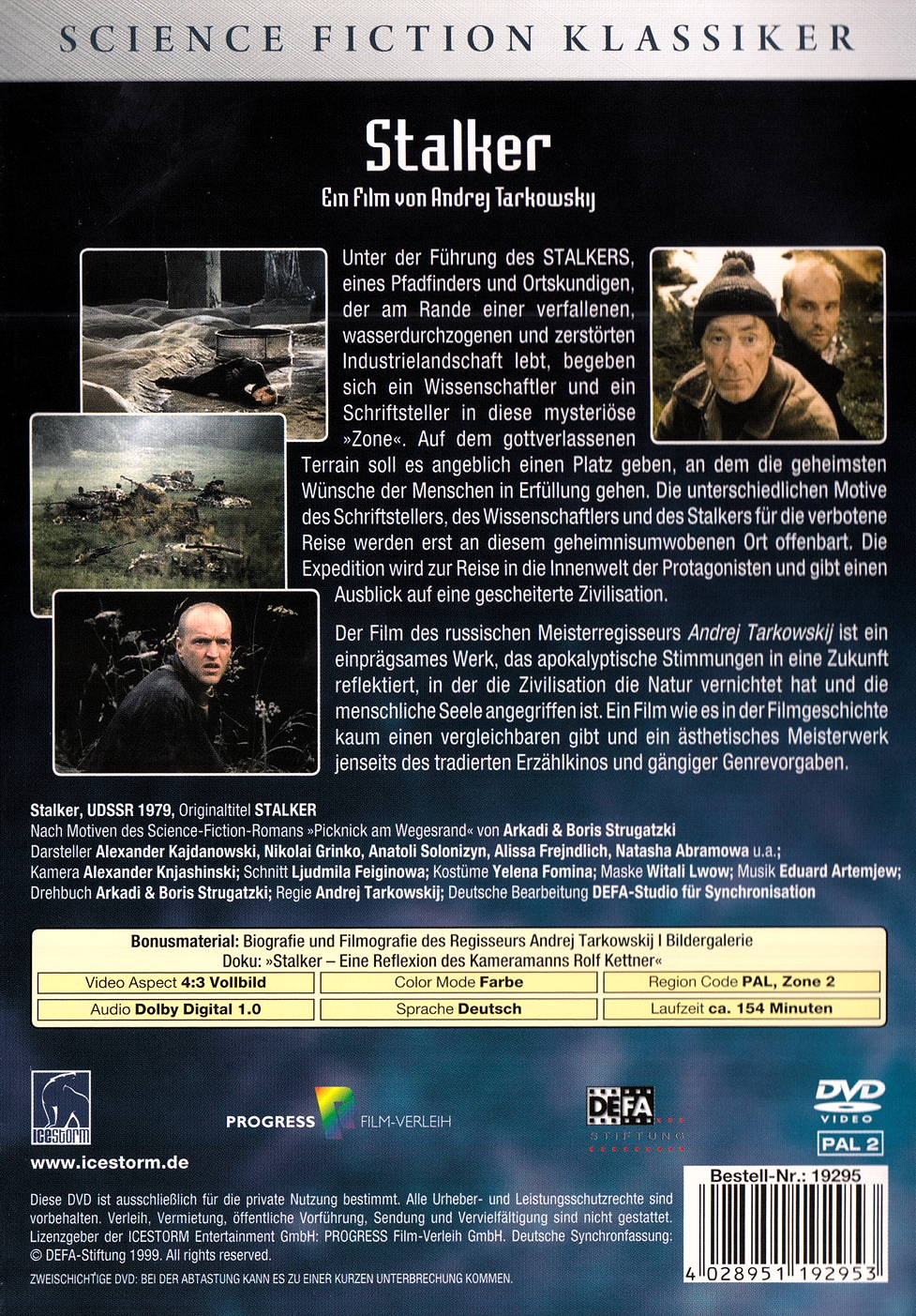 Unter der Führung des Stalkers, eines Pfadfinders und Ortskundigen, der am Rande einer verfallenen Industrielandschaft lebt, begeben sich ein Wissenschaftler und ein Schriftsteller in diese mysteriöse "Zone", in der es angeblich einen Platz geben soll, an dem die geheimsten Wünsche der Menschen in Erfüllung gehen. Die unterschiedlichen Motive des Schriftstellers, des Wissenschaftlers und des Stalkers für die verbotene Reise werden erst an diesem geheimnisumwobenen Ort offenbart. Die Expedition wird zur Reise in die Innenwelt der Protagonisten und gibt einen Ausblick auf eine gescheiterte Zivilisation.