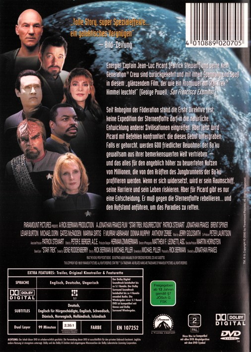 Seit Anbeginn der Föderation stand die Erste Direktive fest: keine Expedition der Sternenflotte darf in die natürliche Entwicklung anderer Zivilisationen eingreifen. Aber jetzt wird Picard mit Befehlen konfrontiert, die dieses Gebot untergraben. Falls er gehorcht, werden 600 friedliche Bewohner der Ba'ku gewaltsam aus ihrer bemerkenswerter Welt vertrieben - und das alles für den angeblich höher zu bewertenden Nutzen von Millionen, die von den Kräften des Jungbrunnens der Ba'ku profitieren werden. Wenn er sich widersetzt, wird er sein Raumschiff, seine Karriere und sein Leben riskieren. Aber für Picard gibt es nur eine Entscheidung: Er muss gegen die Sternenflotte rebellieren - und den Aufstand anführen, um das Paradies zu retten...