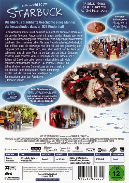 David Wozniak ist ein Taugenichts. Er treibt mit minimalstem Aufwand durch das Leben und scheut sich vor jeder Verantwortung. Mit der Polizistin Valérie hat er eine Beziehung. Als sie ihm erzählt, dass sie schwanger ist, kommt Davids Vergangenheit an die Oberfläche. Vor zwanzig Jahren hat er einer Befruchtungsklink sein Sperma für Geld zur Verfügung gestellt. Nun muss er erfahren, dass er 533 Kinder hat. 142 davon haben eine Sammelklage gegen die Firma erhoben, um herauszufinden wer ihr Vater ist, der Mann, den sie nur unter dem Pseudonym 'Starbuck' kennen.
