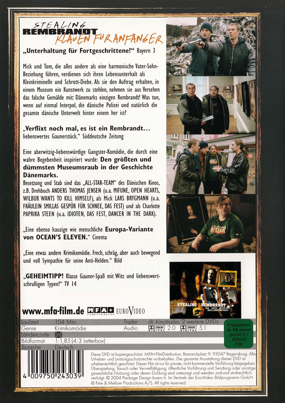 Ein ungleiches, stets zerstrittenes Vater-Sohn-Diebesgespann sind Mick und Tony. Sie werden beauftragt, ein Gemälde aus einem Museum zu stehlen. Versehentlich stehlen sie das Falsche - ein Original-Kunstwerk von Rembrandt, das mehrere Millionen Euro wert ist. Prompt haben die unbedarften Kleinkriminellen Interpol, die dänische Polizei und die gesamte Unterwelt am Hals, und müssen sich ausserdem noch Frage stellen, wer überhaupt dieser Rembrandt war. Das einzige Gute: Auf der Flucht kommen Vater und Sohn einander näher.