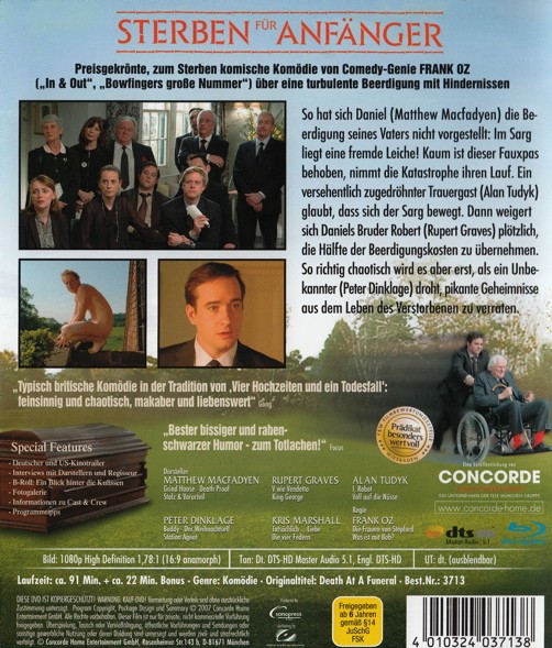 So hat sich Daniel die Beerdigung seines Vaters nicht vorgestellt: Im Sarg liegt eine fremde Leiche! Kaum ist dieser Fauxpas behoben, nimmt die Katastrophe ihren Lauf. Ein versehentlich zugedröhnter Trauergast glaubt, dass sich der Sarg bewegt. Dann weigert sich Daniels Bruder Robert plötzlich, die Hälfte der Beerdigungskosten zu übernehmen. So richtig chaotisch wird es aber erst, als ein Unbekannter droht, pikante Geheimnisse aus dem Leben des Verstorbenen zu verraten.