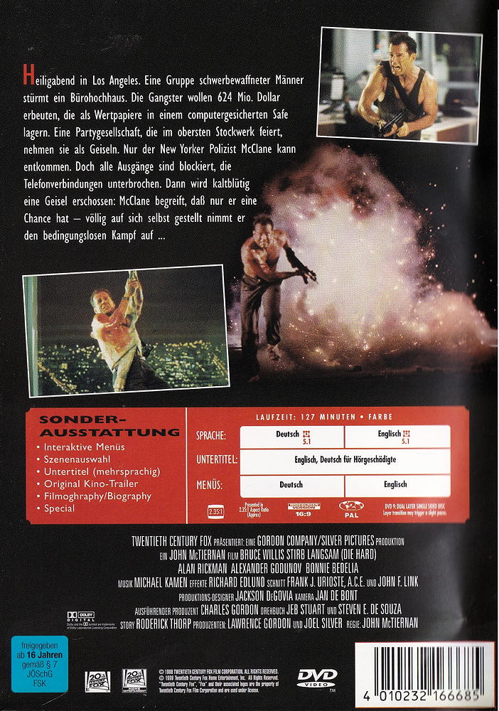 Bruce Willis, Alan Rickman, Robert Davi, William Atherton, Rick Ducommun, Grand L. Bush, Andreas Wisniewski, Bonnie Bedelia, Reginald VelJohnson, Paul Gleason...Gary Roberts, Hart Bochner, Dennis Hayden, Lorenzo Caccialanza, Al Leong, Clarence Gilyard Jr., Matt Landers, Wilhelm von Homburg, Alexander Godunov, De'voreaux White, Bill Marcus, James Shigeta, Joey Plewa, Bruno Doyon, Gérard Bonn, Hans Buhringer