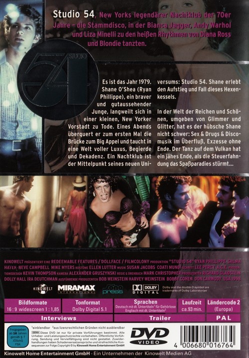 Es ist das Jahr 1979. Shane O'Shea, ein braver und gutaussehender Junge, langweilt sich in einer kleinen und spiessigen New Yorker Vorstadt zu Tode. Eines Abends überquert er zum ersten Mal die Brücke zum Big Apple und taucht in eine Welt voller Luxus, Begierde und Dekadenz. Ein Nachtclub ist der Mittelpunkt seines neuen Universums: Studio 54. Shane erlebt den Aufstieg und Fall dieses Hexenkessels. In der Welt der Reichen und Schönen, umgeben von Glimmer und Glitter, hat es der hübsche Shane nicht schwer: Sex & Drugs & Discomusik im Überfluss, Exzesse ohne Ende. Der Tanz auf dem Vulkan hat ein jähes Ende, als die Steuerfahndung das Spassparadies stürmt.