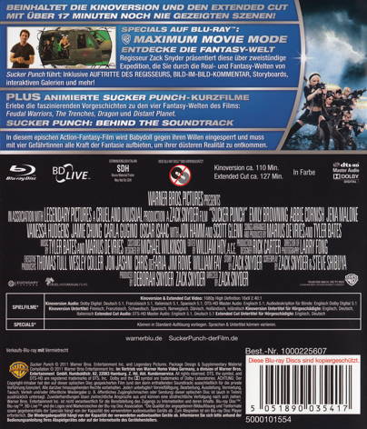 Dieser epische Action-Fantasy-Film ist eine radikale Vision des Regisseurs Zack Snyder (Watchmen – Die Wächter, 300). Sie lässt uns mit der lebhaften Vorstellungskraft der jungen Babydoll (Emily Browning) eine Traumwelt erleben, die ihr die Flucht aus einer grausamen Realität erlaubt: Man hat sie gegen ihren Willen eingesperrt, aber sie gibt nicht auf, kämpft um ihre Freiheit und drängt vier Gefährtinnen – die freimütige Rocket (Jena Malone), die gerissene Blondie (Vanessa Hudgens), die treu ergebene Amber (Jamie Chung) und die zurückhaltende Sweet Pea (Abbie Cornish). Gemeinsam gegen das schreckliche Schicksal aufzubegehren, das ihre Kidnapper Blue (Oscar Isaac), Madam Gorski (Carla Gugino) und High Roller (Jon Hamm) für sie vorgesehen haben.