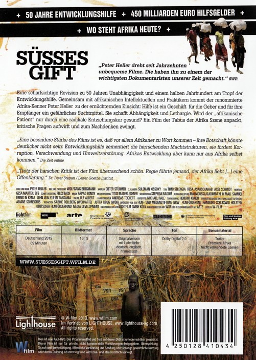 Macht Hilfe abhängig?Der Dokumentarfilm Süsses Gift Hilfe als Geschäft packt Tabus der immerwährend solidarischen Afrika Szene an. Anhand von drei Fallstudien aus Mali, Kenia und Tansania überprüft er die Wirkungen der Entwicklungshilfe aus Sicht der Afrikaner und fragt: Warum hat Afrika nach fünfzig Jahren und 450 Milliarden Euro Hilfsgeldern nicht den erwarteten Entwicklungsschub gemacht?Peter Heller kommt gemeinsam mit afrikanischen Intellektuellen und Praktikern zu der ernüchternden Erkenntnis: jahrzehntelange Hilfe hat nichts gebracht. Während sie im Norden der Welt Zigtausende von Arbeitsplätzen sichert, verfallen die Nehmerländer in Lethargie. Der Film blickt dabei nicht nur in die Vergangenheit, sondern diskutiert auch neue Ansätze von Hilfe und Zusammenarbeit auf Augenhöhe.