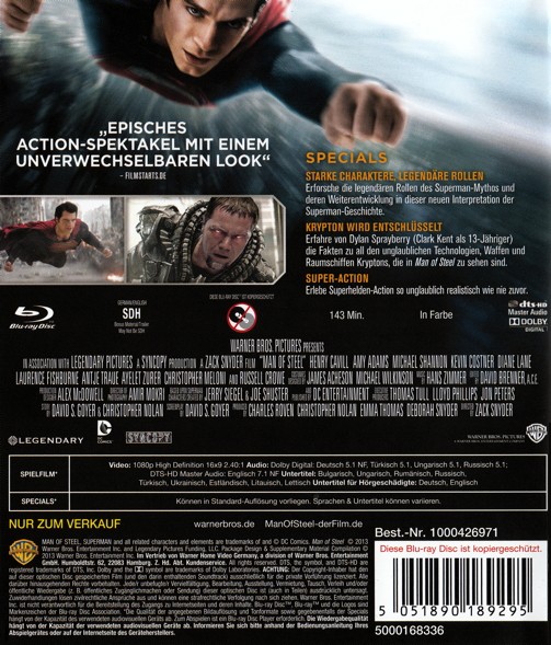 Clark Kent (Henry Cavill) ist ein junger Mann mit Superkräften jenseits aller menschlichen Vorstellungskraft. Dennoch oder vielleicht sogar deswegen fühlt er sich allein und isoliert. Vor Jahren hat ihn sein Vater Jor-El (Russell Crowe) von Krypton, einem hoch entwickelten Planeten, zur Erde geschickt und nun sieht sich Clark ständig mit der Frage konfrontiert: Wieso bin ich hier? Geprägt von den Werten seiner Adoptiveltern Martha (Diane Lane) und Jonathan Kent (Kevin Costner) entdeckt Clark bald, dass Superkräfte zu haben auch Verantwortung mit sich bringt und die Notwendigkeit, schwierige Entscheidungen zu treffen. Clarks Adoptivvater glaubt, dass die Menschheit nicht bereit ist, zu erfahren, wer sein Sohn wirklich ist und welche Fähigkeiten er hat. Doch als die Welt vom finsteren General Zod (Michael Shannon) angegriffen wird, braucht sie ihren 'Superman' dringender als jemals zuvor - ob sie nun bereit ist oder nicht.