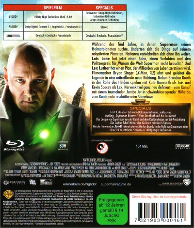 Er ist wieder da. Ein Held für das neue Jahrtausend. Und er erscheint gerade rechtzeitig, denn in den Jahren, in denen Superman auf der Suche nach seinem Heimatplaneten war, hat sich in seiner Wahlheimat einiges verändert. Die Menschen haben gelernt, auf ihn zu verzichten. Lois Lane ist inzwischen Mutter, verlobt und Trägerin des Pulitzer-Preises mit ihrem Artikel "Warum die Welt ohne Superman auskommt". Und Lex Luthor entwickelt einen Plan, der nicht Millionen, sondern Milliarden Menschenleben kosten soll. Regisseur Bryan Singer gibt der Welt den Superman zurück, den sie braucht. Er hält sich eng an die vertraute Legende, schlägt dabei aber eine spannende neue Richtung ein. Brandon Routh erweist sich als perfekte Besetzung im Heldenumhang. Zu den hochkarätigen Darstellern gehören ausserdem Kate Bosworth als Lois und Kevin Spacey als Lex. Und angesichts der Hochspannung - von der Rettung eines abstürzenden Jumbojets bis zum Showdown, bei dem ein ganzer Kontinent auf dem Spiel steht - definiert er Actionkino neu. "Ich bleibe immer in der Nähe", verspricht Superman Lois. Ihr werdet froh sein, dass er wieder da ist.