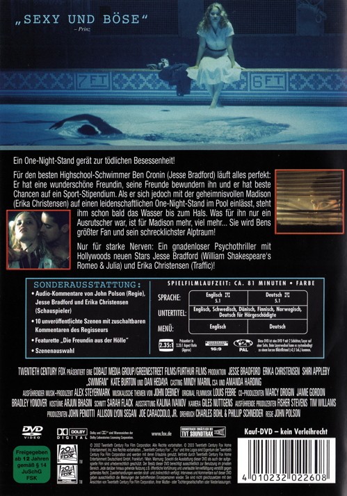 Für den besten Highschool-Schwimmer Ben Cronin läuft alles perfekt: Er hat eine wunderschöne Freundin, seine Freunde bewundern ihn und er hat beste Chancen auf ein Sport-Stipendium. Als er sich jedoch mit der geheimnsivollen Madison auf einen leidenschaftlichen One-Night-Stand im Pool einlässt, steht ihm schon bald das Wasser bis zum Hals. Was für ihn nur ein Ausrutscher war, ist für Madison mehr, viel mehr...Sie wird Bens größter Fan und sein schrecklichster Alptraum! Nur für starke Nerve.