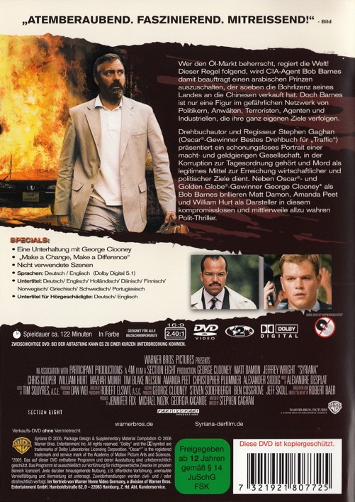 Wer den Öl-Markt beherrscht, regiert die Welt! Dieser Regel folgend, wird CIA-Agent Bob Barnes damit beauftragt einen arabischen Prinzen auszuschalten, der soeben die Bohrlizenz seines Landes an die Chinesen verkauft hat. Doch Barnes ist nur eine Figur im gefährlichen Netzwerk von Politikern, Anwälten, Terroristen, Agenten und Industriellen, die ihre ganz eigenen Ziele verfolgen.