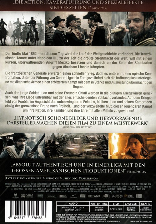 Der fünfte Mai 1862 - an diesem Tag wird der Lauf der Weltgeschichte verändert. Die französische Armee unter Napoleon III., zu der Zeit die größte Streitmacht der Welt, will mit einem kurzen, überwältigenden Angriff Mexiko besetzen und danach an der Seite der Südstaaten gegen Abraham Lincoln kämpfen. Die französischen Generäle erwarten einen schnellen Sieg, doch es entbrennt eine epische Konfrontation. Unter der Führung von General Ignacio Zaragoza liefert sich die hoffnungslos unterlegene mexikanische Armee einen erbitterten Kampf mit dem in Stärke und Ausrüstung übermächtigen Gegner. Auch der junge Soldat Juan und seine Freundin Citlali werden in die blutigen Kriegswirren gerissen, was ihre Liebe untrennbar mit der alles entscheidenden Schlacht verbindet. Auf dem Kriegsfeld von Puebla, im Angesicht des unbezwingbaren Feindes, bleiben Juan und seinen Kameraden einzig der grenzenlose Drang nach Freiheit... und der verzweifelte Mut, diesen legendären Kampf um ihre Nation, ihre Familien und ihre Ehre mit allen Mitteln zu gewinnen!