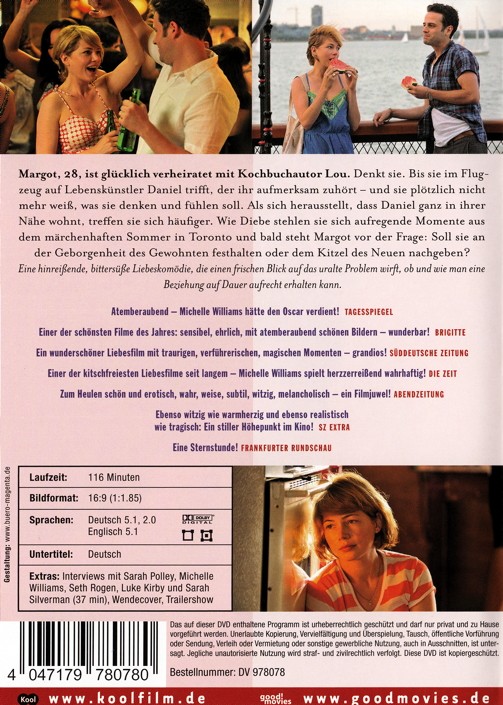 Margot, 28, ist glücklich verheiratet mit Kochbuchautor Lou. Denkt sie. Bis sie im Flugzeug auf Lebenskünstler Daniel trifft, der ihr aufmerksam zuhört - und sie plötzlich nicht mehr weiß, was sie denken und fühlen soll. Als sich herausstellt, dass Daniel ganz in ihrer Nähe wohnt, treffen sie sich häufiger. Wie Diebe stehlen sie sich aufregende Momente aus dem märchenhaften Sommer in Toronto und bald steht Margot vor der Frage: Soll sie an der Geborgenheit des Gewohnten festhalten oder dem Kitzel des Neuen nachgeben?